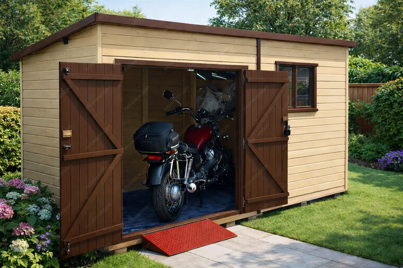 Деревянный гараж для мотоциклов и квадроциклов — это специализированное сооружение, созданное для надёжного хранения мототехники и сопутствующего оборудования. Прочная конструкция из натуральной древесины обеспечивает оптимальный микроклимат внутри: материал дышит, предотвращая скопление влаги и образование коррозии на металлических деталях, а также защищает от резких перепадов температур. Это идеальная среда для сохранения работоспособности двигателей, ходовой части и внешнего вида техники в межсезонье и во время длительного простоя. Внутреннее пространство организовано с учётом потребностей владельца: предусмотрены полки и стеллажи для размещения шлемов, защитной экипировки, инструментов, запасных частей и расходных материалов. Всё необходимое всегда под рукой, а порядок внутри гаража позволяет быстро подготовиться к выезду или провести техническое обслуживание. Продуманная система хранения исключает беспорядок и экономит время. Внешний вид строения гармонично вписывается в любой ландшафт, будь то загородный участок или территория загородного дома. Древесина придаёт естественность и экологичность, а при желании гараж может быть окрашен в любой цвет или покрыт защитными составами для увеличения срока службы. Конструкция рассчитана на высокие нагрузки, устойчива к ветру и осадкам, что гарантирует сохранность мотоциклов и квадроциклов даже в суровых погодных условиях. Инвестиция в такой гараж — это вложение в долговечность техники и собственное спокойствие.