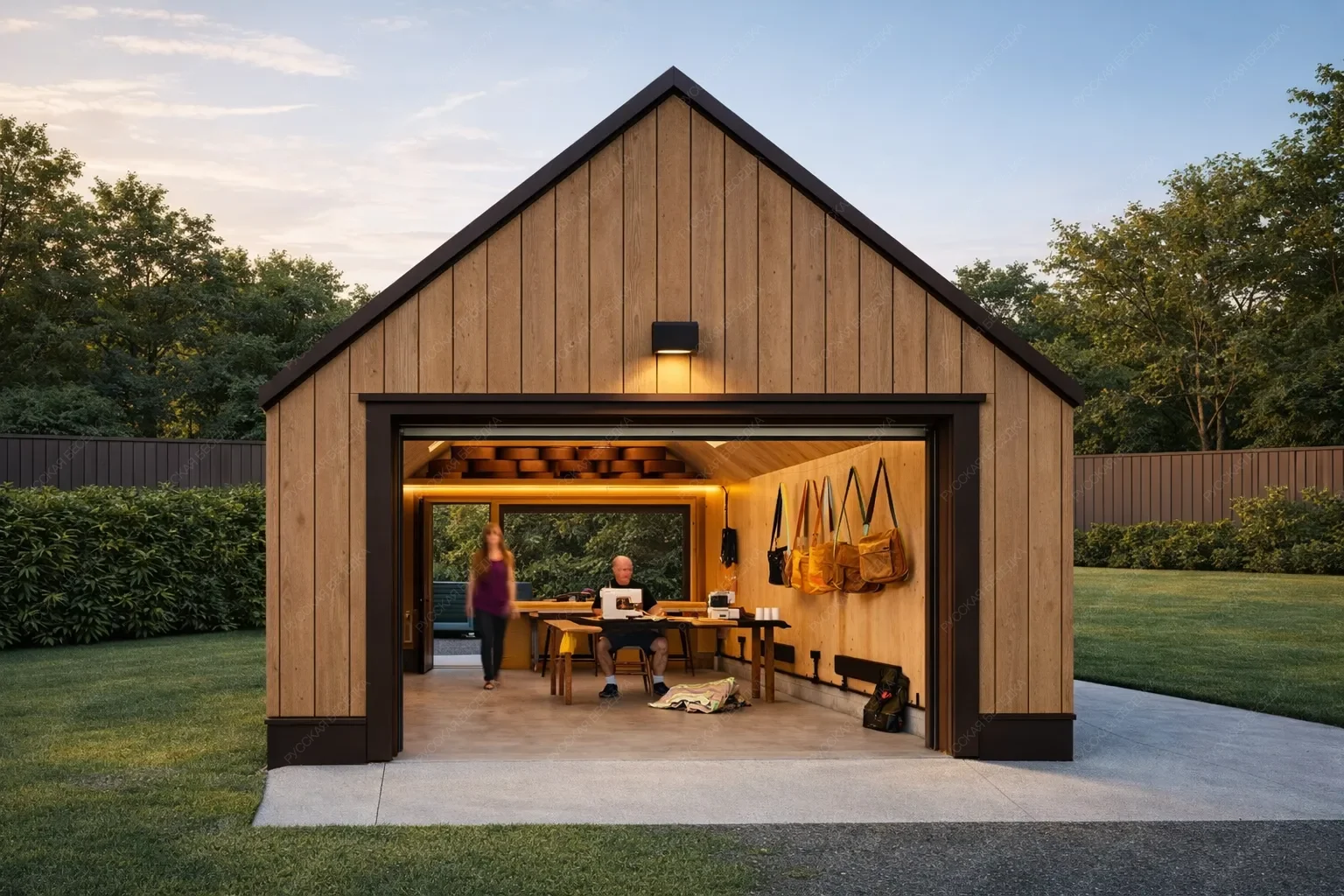 Деревянный гараж — это не только удобное и функциональное сооружение, но и отличная возможность дополнить архитектурный стиль вашего участка. Деревянные конструкции остаются вечной классикой, так как дерево — экологически чистый и натуральный материал. Одним из основных преимуществ деревянных гаражей является их доступная цена, что делает их более выгодным вариантом по сравнению с постройками из других материалов. При правильном строительстве деревянный гараж может служить десятилетиями, сохраняя все свои свойства и привлекательный внешний вид. Мы заботимся о качестве наших конструкций, обрабатывая древесину надёжными пропитками, которые защищают от гниения и плесени. Огнебиозащитные средства обеспечивают устойчивость к влаге, ультрафиолетовому излучению, перепадам температуры и другим атмосферным воздействиям. Кроме того, мы можем предложить утепление гаража, учитывая важность пароизоляции для сохранения тепла и защиты конструкции. Индивидуальное проектирование позволит вам точно вписать гараж в экстерьер вашего участка и оптимально спланировать внутреннее пространство для удобства использования. Создайте идеальное место для хранения вашего автомобиля и оборудования с нашим деревянным гаражом!