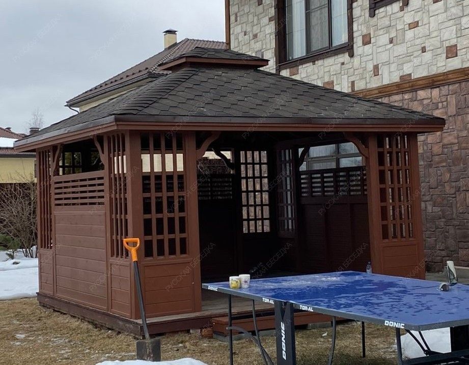 Беседка выполненная из лучших пород древесины, прослужит долгие годы и не потребует особого ухода и обслуживания. Специальные лакокрасочные материалы которые мы используем, предотвратят старение, гниение и заражение грибком конструкции кухни. Используемая огнебиозащита образует полупрозрачное полуматовое покрытие, стойкое к влаге, УФ-излучению, перепадам температуры и другим атмосферным воздействиям.
