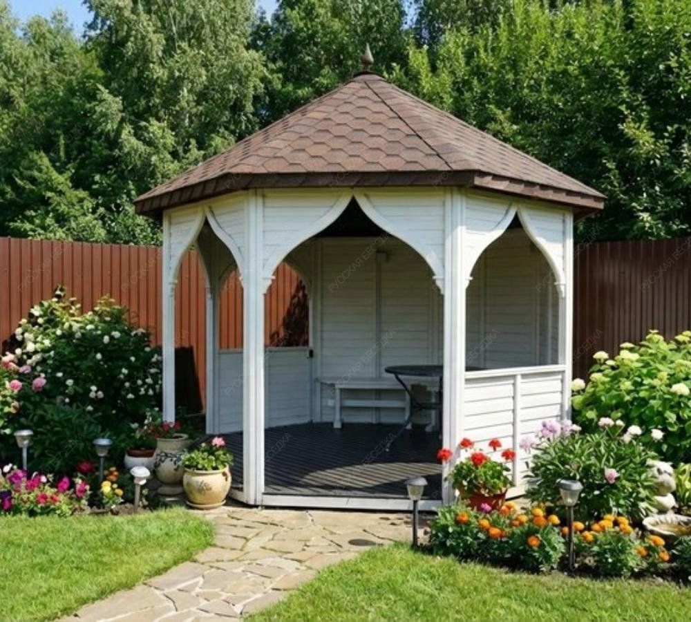 Современный ландшафтный дизайн и беседки - центральные элементы загородного участка. Беседка должна размещаться в таком месте участка, где вам будет комфортно находиться, а также она должна отвечать своему назначению и притягивать взгляды. Беседка является уникальным строением, с ее помощью можно отдохнуть за чашечкой кофе, укрыться от знойного солнца или провести шумный праздник в кругу семьи и друзей.