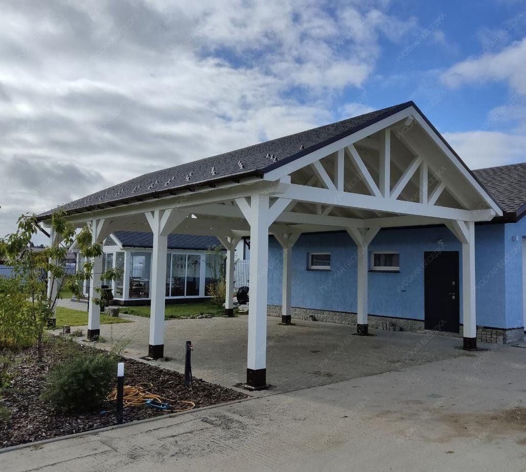 Навес из дерева послужит отличным парковочным местом для одного или нескольких автомобилей.