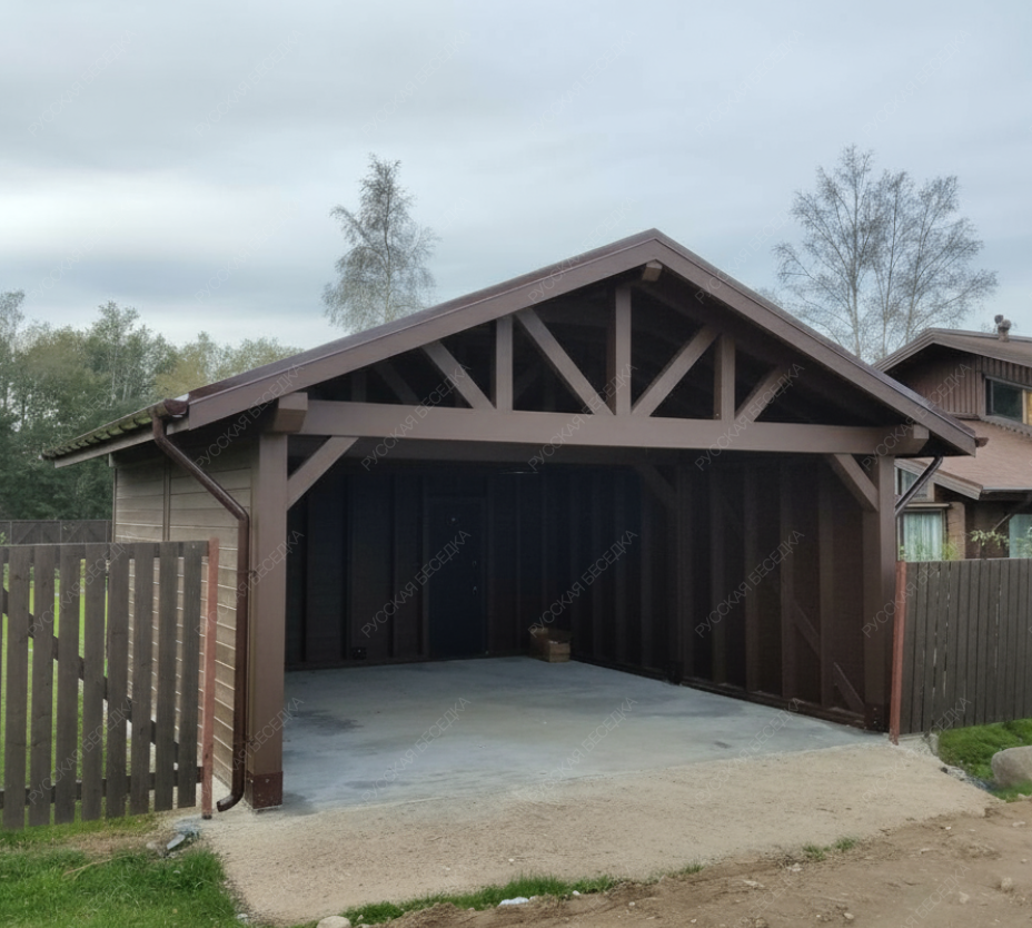 Навес из дерева послужит отличным парковочным местом для одного или нескольких автомобилей.