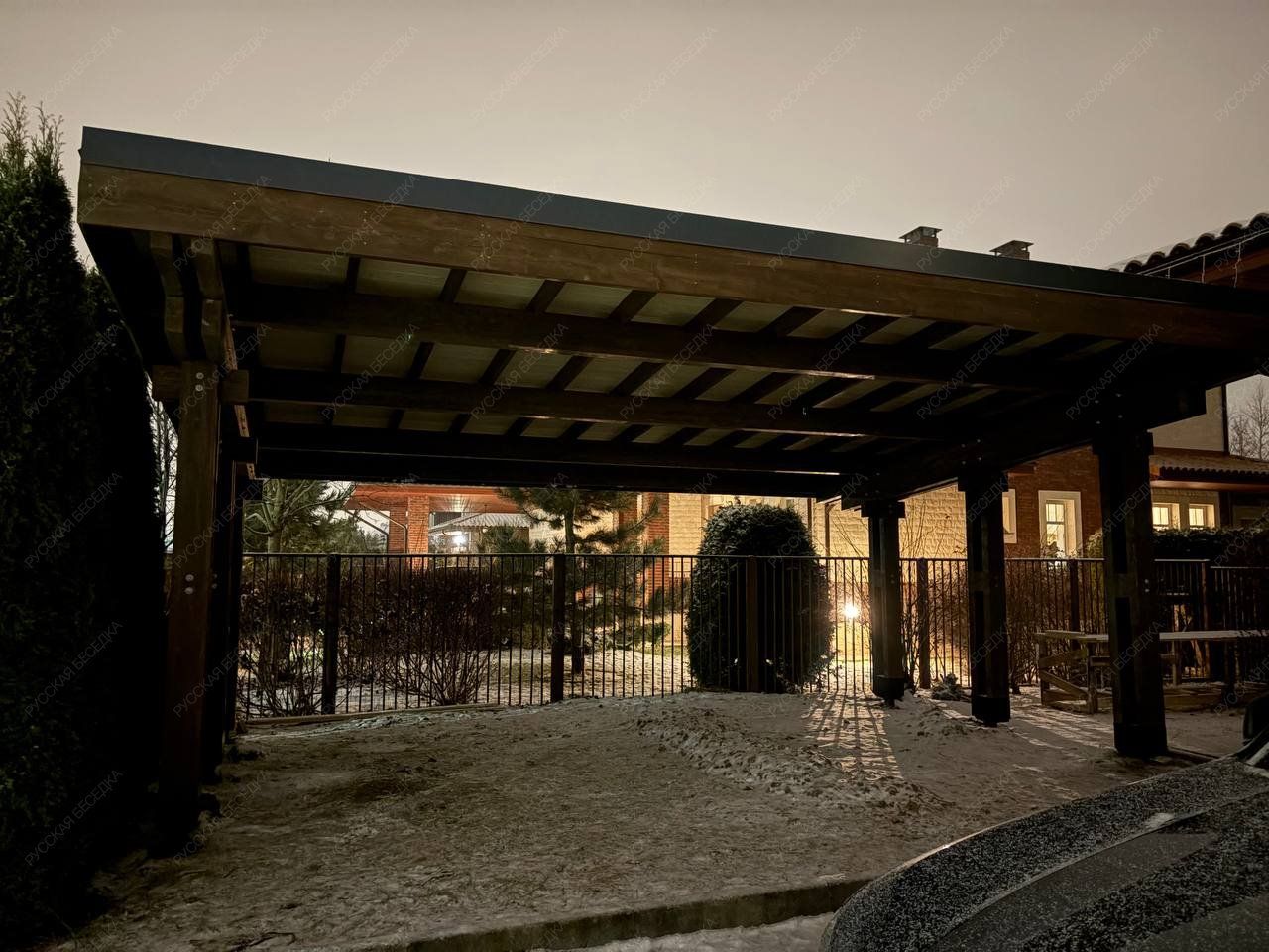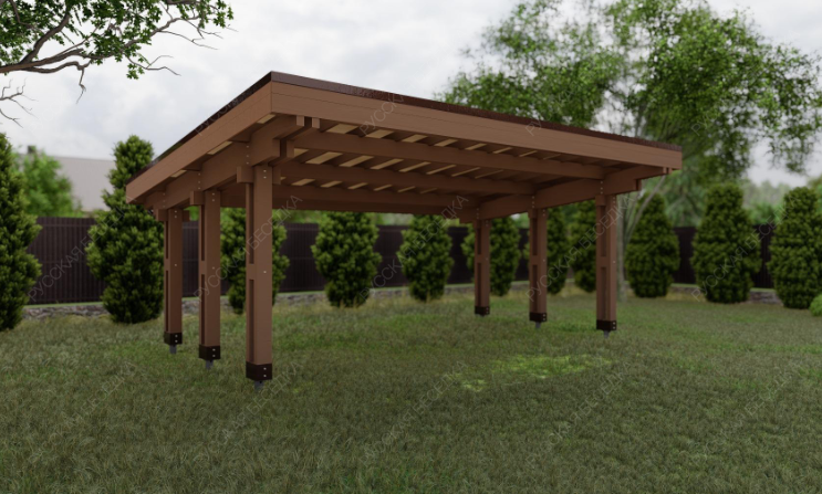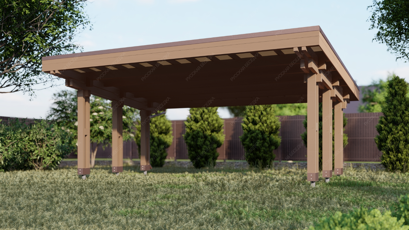 Навес из дерева послужит отличным парковочным местом для одного или нескольких автомобилей.