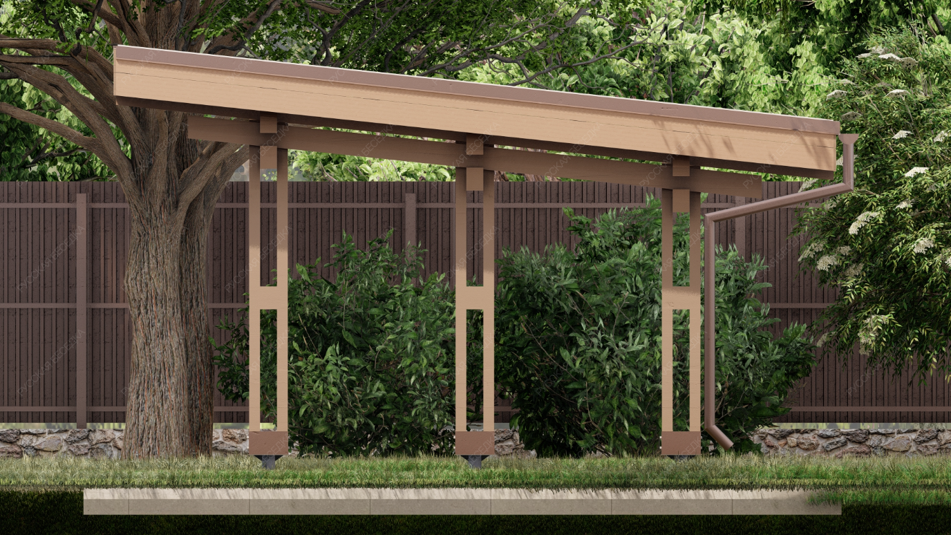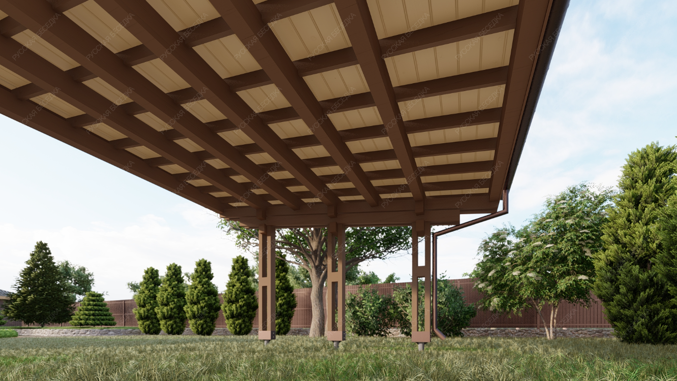Для производства всех элементов навеса используется только отборная древесина без малейших дефектов, прошедшая камерную сушку и пропитку антисептиками. Навесу после защитной обработки лаком не страшны высокая влажность, а значит, можно быть уверенным, что дерево не растрескается, не разбухнет и не покоробится.