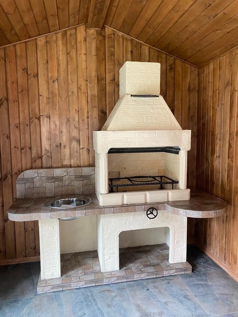 Барбекю-комплекс сделан из армированного огнеупорного бетона с добавлением керамзита.