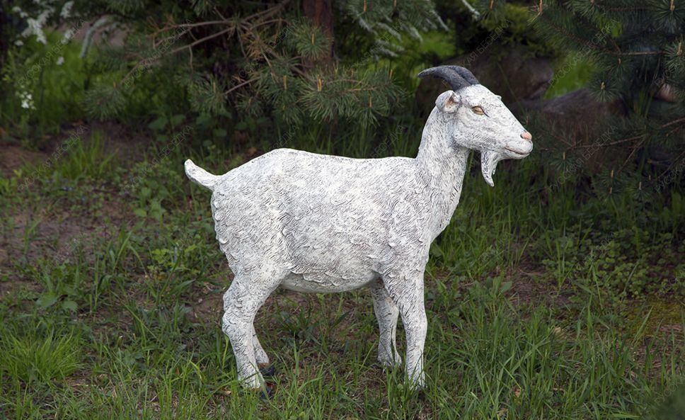 Авторская фигурка «Коза» украсит любой дачный или садовый участок, добавит оригинальности, станет изюминкой ландшафта.  Садовая фигурка козы изготовлена вручную, индивидуальна и неповторима.  В качестве материалов использован стеклопластик и полиэфирная смола. Фигурка расписана невыгорающими финскими красками, стойка к перепадам температур и ультрафиолету. Высота фигурки: 80 см. Вес: 8 кг Габариты (ВxШxГ): 80/30/90 см