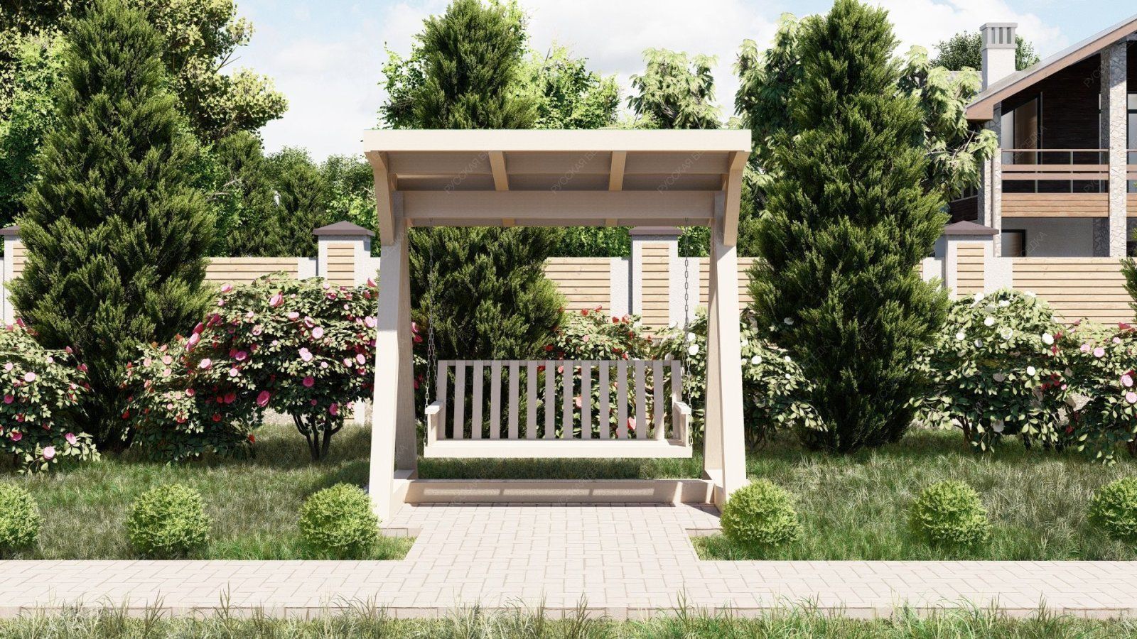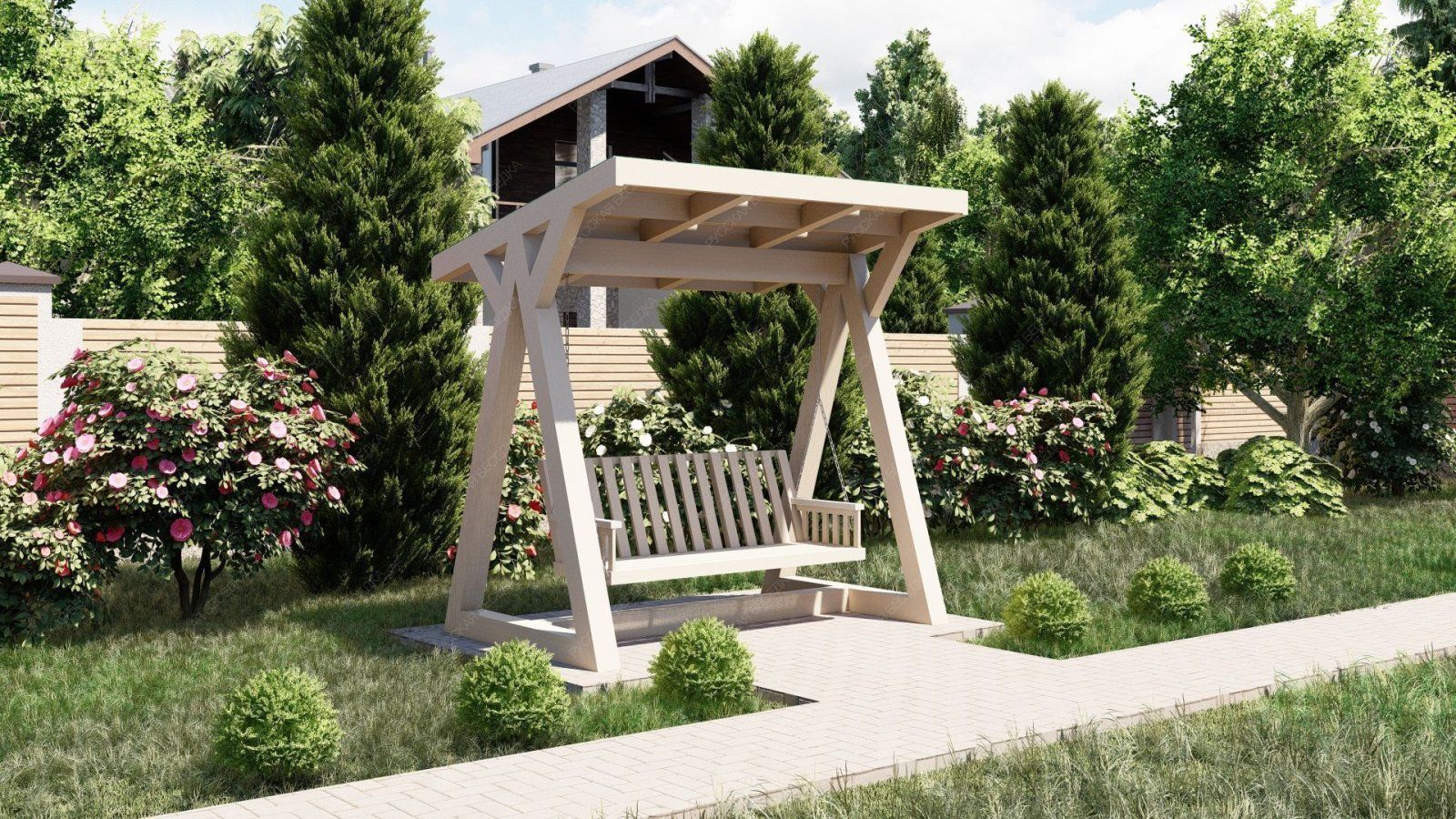 Эти качели идеально вписываются в ландшафт вашего участка, добавляя ему стильный и современный акцент. Они станут любимым местом для всей семьи, где можно провести время в общении и отдыхе.