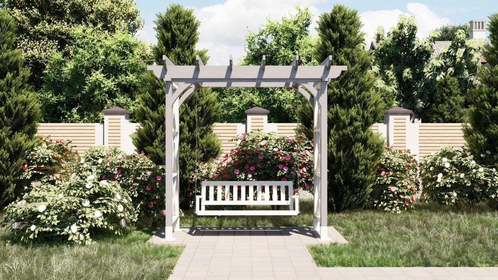 Эти качели идеально вписываются в ландшафт вашего участка, добавляя ему стильный и современный акцент. Они станут любимым местом для всей семьи, где можно провести время в общении и отдыхе.