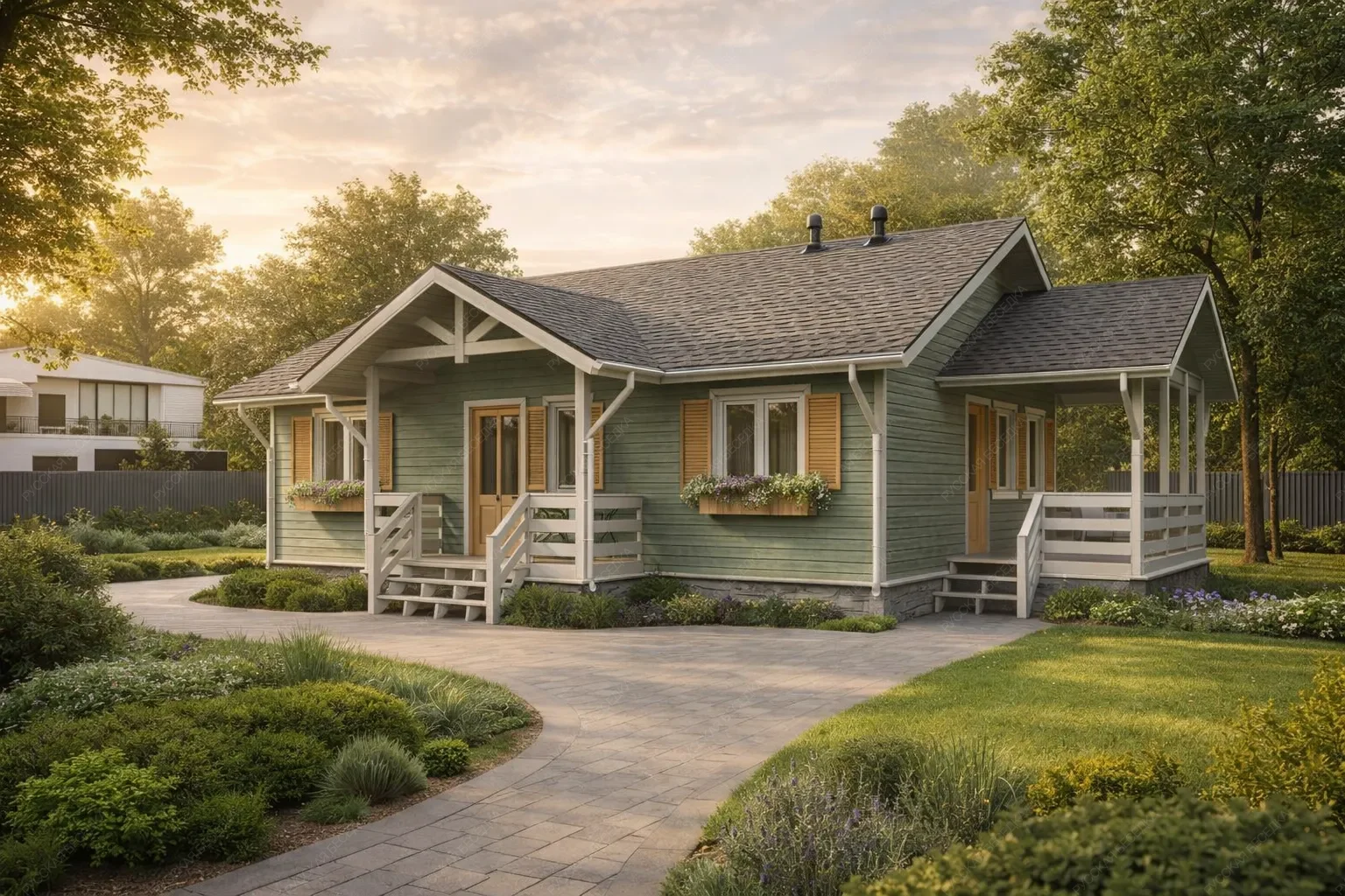 Садовые дома из хвойных пород древесины — это идеальное решение для обустройства загородного участка. Просторные и уютные, они отлично подходят для летнего проживания, выполняя функцию гостевого дома или компактной дачи, где можно с комфортом проводить тёплые месяцы вдали от городской суеты. В основе конструкции — массив сухой строганной доски камерной сушки и клееный брус, прошедшие тщательную обработку. Сорт древесины АВ по лицевой стороне обеспечивает чистую, эстетичную поверхность с благородной текстурой натурального дерева. Хвойные породы (ель и сосна) создают внутри особый микроклимат: воздух наполняется лёгким ароматом смол, а естественная способность древесины дышать поддерживает комфортный уровень влажности даже в жаркие дни. Такие постройки органично вписываются в любой ландшафт, не требуя массивного фундамента и сложного ухода. Внутреннее пространство может быть организовано по собственному усмотрению: от зоны отдыха до компактной спальни или столовой. Это полноценное жилое пространство, где каждая деталь продумана для того, чтобы пребывание на свежем воздухе было максимально комфортным. Капитальность конструкции, обеспеченная качественными материалами, гарантирует долгие годы эксплуатации. Садовый дом становится не просто постройкой, а любимым местом встреч с близкими и уединённого отдыха на лоне природы.