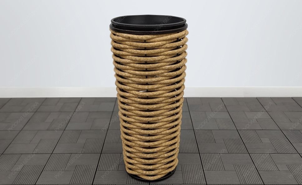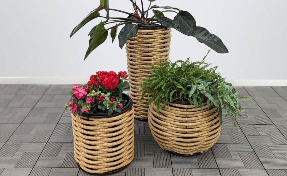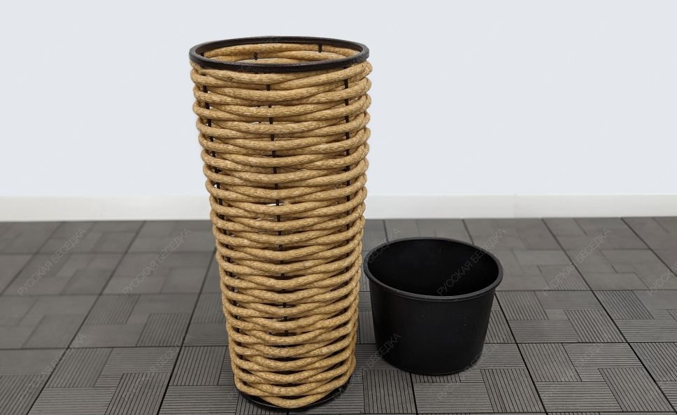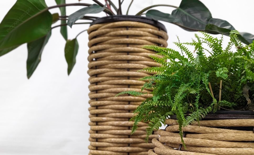 Плетеные вазоны (кашпо) широко используются как в декорировании интерьера, так и при оформлении садовых территорий и двориков. Кашпо из экоротанга можно оставлять на улице круглый год - оно не выгорает при прямых солнечных лучах, устойчиво к влаге. Оформите красивые и эффектные клумбы на даче или балконе и лоджии с помощью плетеных кашпо разных размеров и цветов. Объем пластикового горшка внутри кашпо 20 литров.