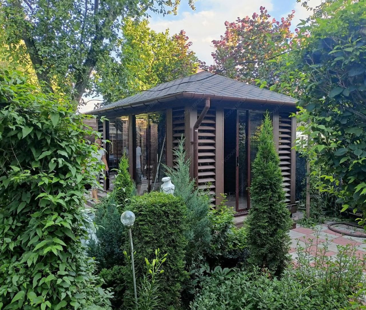 Современный ландшафтный дизайн и беседки - центральные элементы загородного участка. Беседка должна размещаться в таком месте участка, где вам будет комфортно находиться, а также она должна отвечать своему назначению и притягивать взгляды. Беседка является уникальным строением, с ее помощью можно отдохнуть за чашечкой кофе, укрыться от знойного солнца или провести шумный праздник в кругу семьи и друзей.